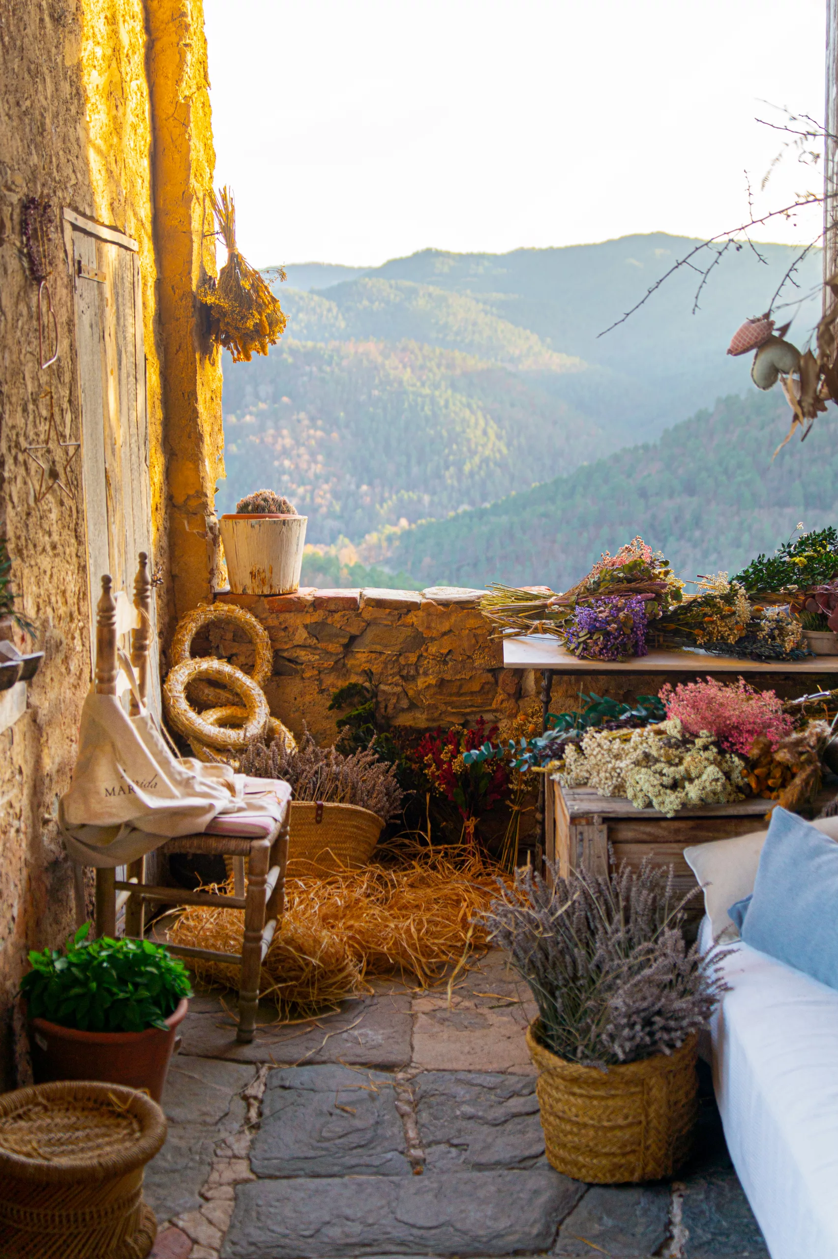 Por ello, el combinar el producto en un lugar tan mágico como este, ofreció una sintonía hermosa en las imágenes, logrando unir los valores de Querida Margarita y Mas el Mir. El entorno ofrece unas vistas en las que el tiempo parece haberse detenido, lleno de ventanas de paz abiertas a la naturaleza.